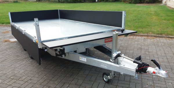 Neuer Tandem-Dreiseitenkipper mit E-Pumpe, 35cm Bordwandhöhe und niedrigem Fahrwerk, Black Edition.